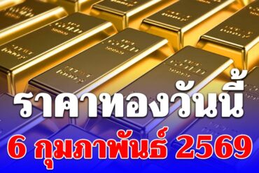 ราคาทองวันนี้ 6 กุมภาพันธ์ 2569 ประกาศครั้งที่ 1