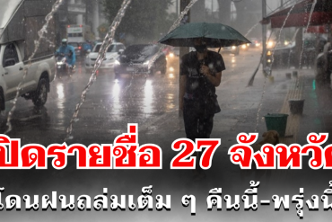 ประกาศเเล้ว! กรมอุตุฯ เปิดรายชื่อ 27 จังหวัด โดนฝนถล่มเต็ม ๆ คืนนี้-พรุ่งนี้