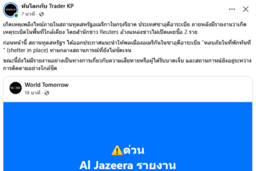 จากสถานการณ์ความตึงเครียดในตะวันออกกลางปะทุรุนแรงขึ้นอย่างต่อเนื่อง หลัง สหรัฐอเมริกา เปิดปฏิบัติการทางทหารโจมตีเป้าหมายใน อิหร่าน ร่วมกับ อิสราเอล นำไปสู่การตอบโต้ข้ามพรมแดนและการขยายวงความขัดแย้งในภูมิภาคอย่างรวดเร็ว ท่ามกลางความกังวลของนานาชาติว่าความรุนแรงอาจลุกลามกระทบเสถียรภาพพลังงานโลก ล่าสุด เพจเฟซบุ๊ก World Tomorrow ได้ออกมารายงานว่า ด่วน Al Jazeera รายงาน สถานทูตสหรัฐฯ ในกรุงริยาดซาอุดิอาระเบีย เกิดเหตุระเบิดและมีเพลิงไหม้ ก่อนที่ทางด้านเพจเฟซบุ๊ก ทันโลกกับ Trader KP จะเเชร์โพสต์ดังกล่าวออกไปพร้อมระบุข้อความว่า เกิดเหตุเพลิงไหม้ภายในสถานทูตสหรัฐอเมริกาในกรุงริยาด ประเทศซาอุดีอาระเบีย ภายหลังมีรายงานว่าเกิดเหตุระเบิดในพื้นที่ใกล้เคียง…