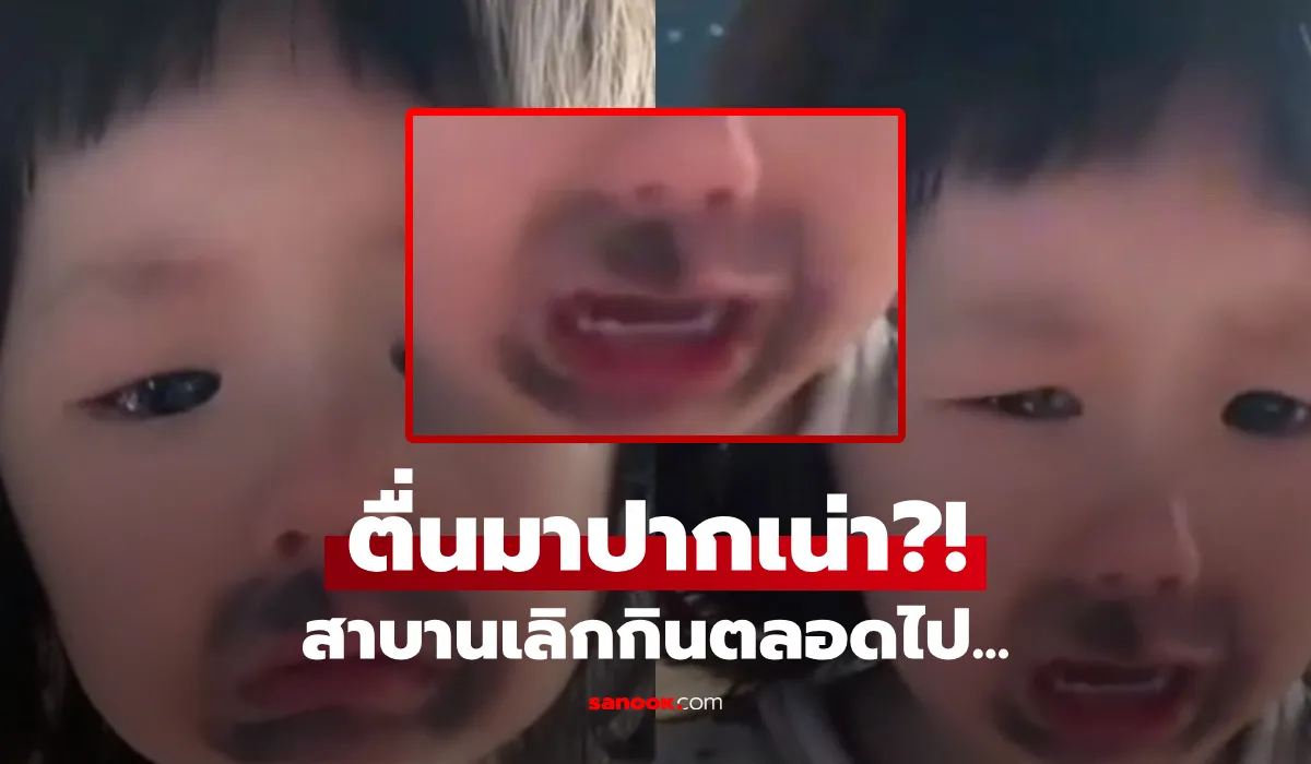 ในบ่ายวันหยุดขณะที่ลูกสาวกำลังหลับปุ๋ย คุณแม่ย่องหยิบปากกาเมจิกมาบรรจง “ระบายสีดำ” รอบๆ ปากของลูกสาว ให้ดูเหมือนรอยไหม้หรือรอยเน่า!
