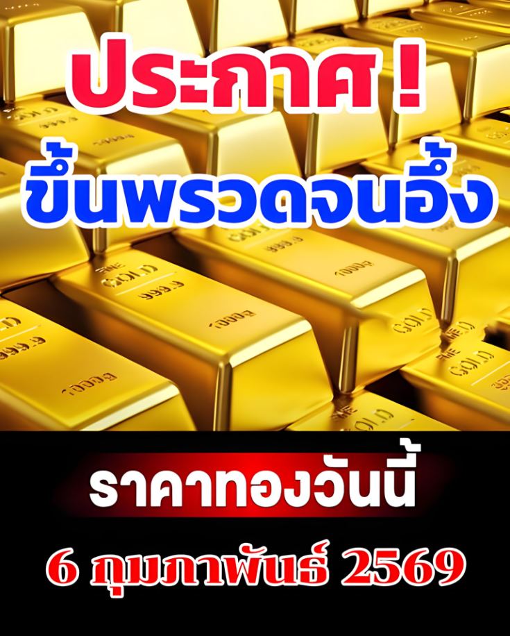 ราคาทองวันนี้ 6 กุมภาพันธ์ 2569 โดย สมาคมค้าทองคำ ประกาศราคาทองครั้งที่ 1 (เปิดตลาด) เมื่อเวลา 09.06 น. ปรับตัวแรงพรวดเดียว 1,200 บาท สู่บริเวณ 74,500 บาท ต่อมาเวลา 09.17 น. ปรับครั้งที่ 4 ลงอีก 100 รวมปรับลงแล้ว 1,700 บาท