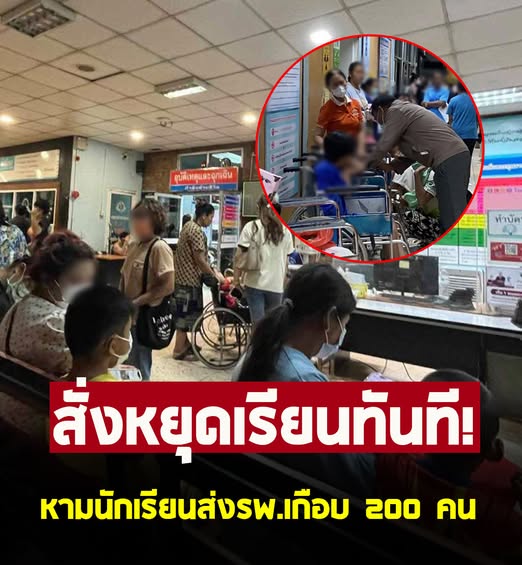 คาดว่าอาหารเป็นพิษจนต้องหามนักเรียนส่งรพ.เกือบ 200 คน ล่าสุดทางโรงเรียนออกประกาศหยุดเรียนเป็นกรณีพิเศษ วันที่ 30 พ.ค.68