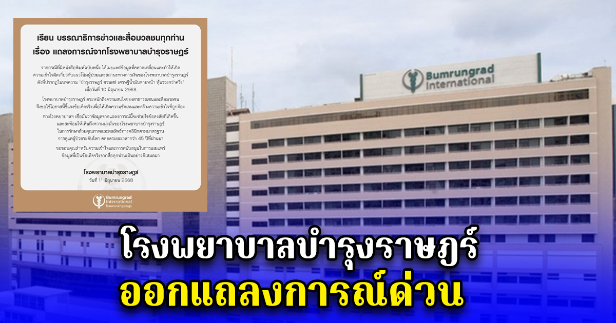 เมื่อวันที่ 14 มิ.ย.68 ผู้สื่อข่าวรายงานว่า โรงพยาบาลบำรุงราษฎร์ ออกแถลงการณ์สำคัญ ชี้แจงข้อเท็จจริงเกี่ยวกับการนำเสนอข่าวที่มีการพาดหัวข้อข่าว “บำรุงราษฎร์ ซวนเซ! เศรษฐีน้ำมันหายหน้า หุ้นร่วงกว่าครึ่ง” เมื่อวันที่ 10 มิถุนายน 2568 มีรายละเอียดของแถลงการณ์ ดังนี้ ทางโรงพยาบาลฯ ขอถือโอกาสเรียนชี้แจงเกี่ยวกับบทความล่าสุดในหัวข้อ “บำรุงราษฎร์ ซวนเซ! เศรษฐีน้ำมันหายหน้า หุ้นร่วงกว่าครึ่ง” (วันที่ 10 มิถุนายน 2568)