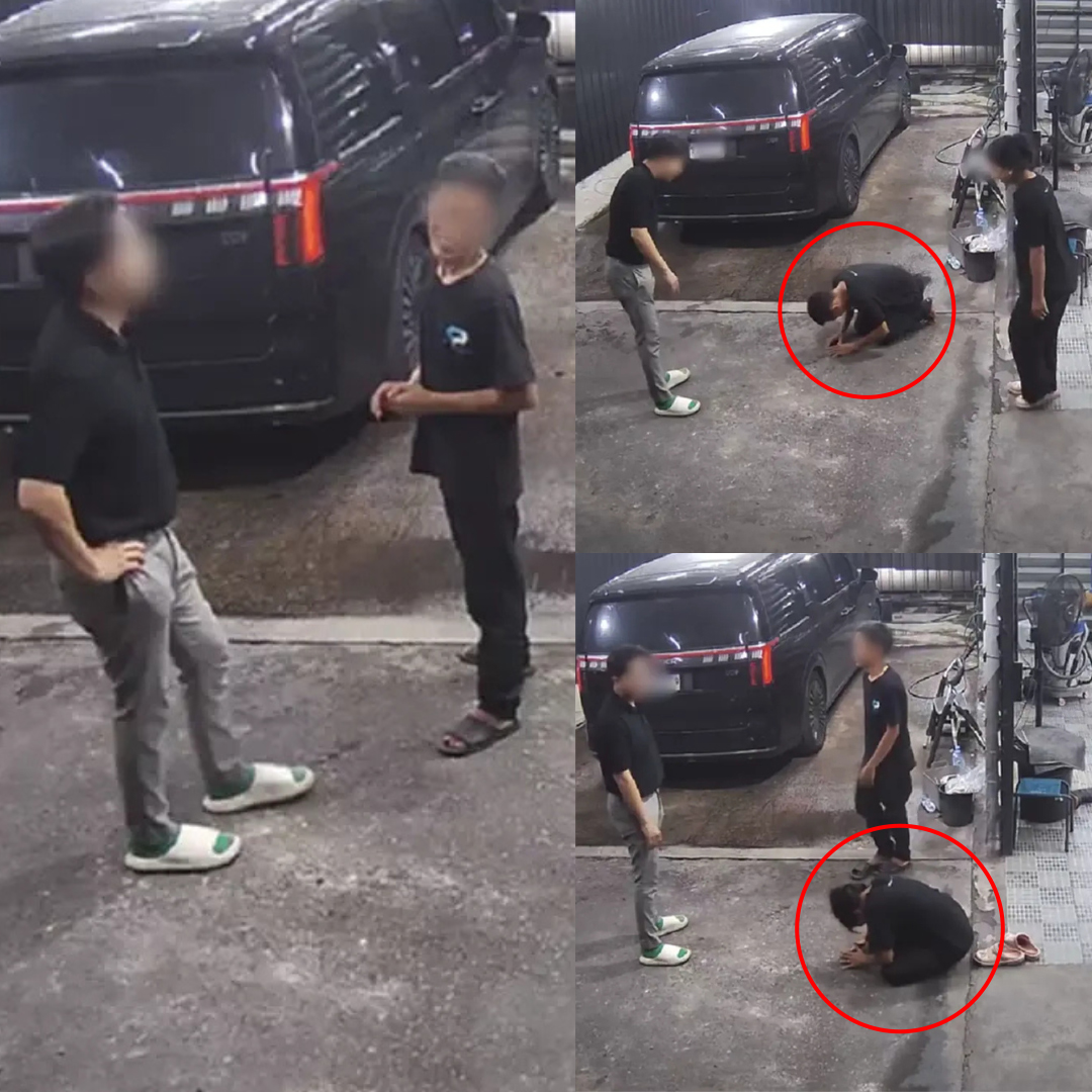 โดยในคลิปผู้โพสต์ กำลังยืนคุยอยู่กับลูกน้องชายหญิงต่างด้าน 2 คน ระหว่างนั้นฝ่ายชายก็ยกมือไหว้ก่อนจะนั่งลงกับพื้นที่แล้วกราบเท้า ทำเอาผู้โพสต์ตกใจรีบบอกให้ลุกขึ้น จากนั้นฝ่ายหญิงก็ทำตาม นั่งลงกับพื้นแล้วกราบเท้าผู้โพสต์ จนผู้โพสต์ต้องมาประคองตัวลุกขึ้น ก่อนที่ทั้ง 2 จะเดินกลับไป
