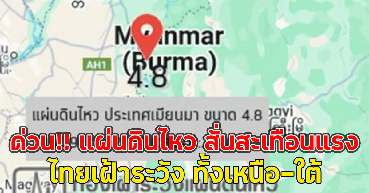2025-06-29 01:27:37 | แรงสั่นสะเทือนขนาด 4.8 แมกนิจูด ศูนย์กลางที่ ประเทศเมียนมา ลึกลงไปจากพื้นดินประมาณ 10 กิโลเมตร ทางทิศตะวันตกเฉียงเหนือของ อ.ปางมะผ้า จ.แม่ฮ่องสอน ประมาณ 281 กม.