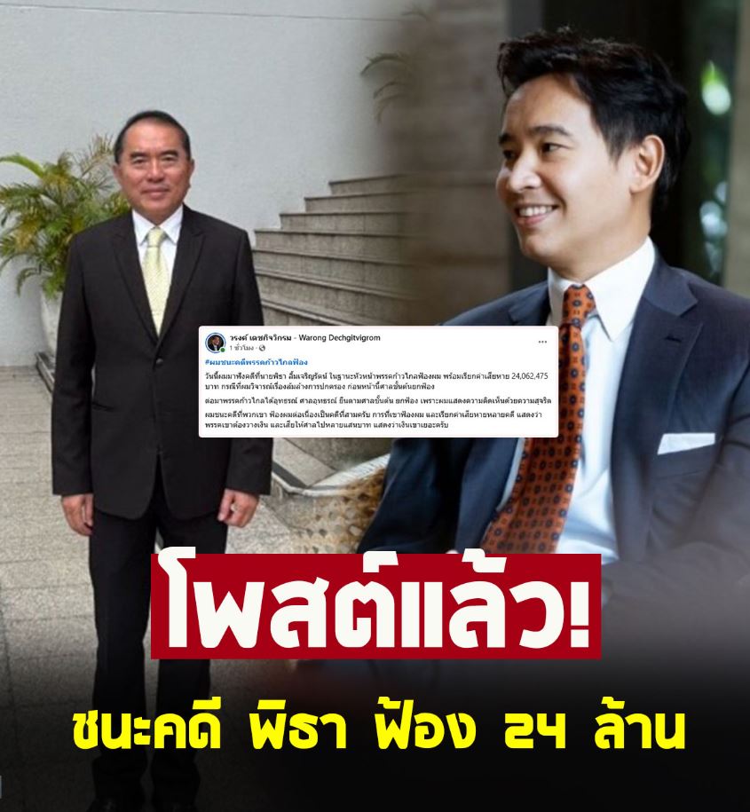 หมอวรงค์ โพสต์แล้ว ชนะคดี พิธา ฟ้อง 24 ล้าน