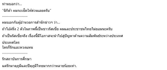 ถ้าไอ้ฝรั่ง 2 ตัวในภาพนี้เป็นชาวรัสเซีย ผมและประชาชนไทยไม่ยอมนะครับ ถ้าเป็นรัสเซียจริง เรื่องนี้มีโอกาสจะนำไปสู่ปัญหาด้านความสัมพันธ์ระหว่างประเทศ