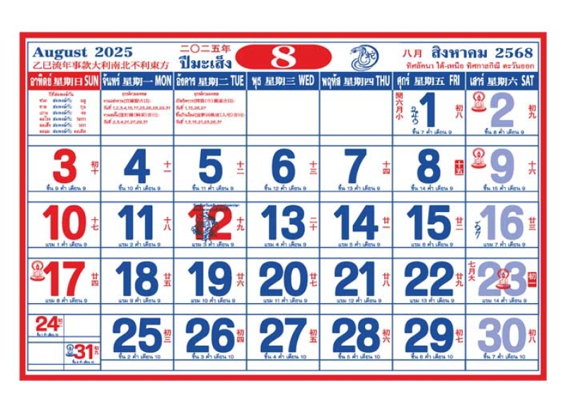 วันหยุดเดือนสิงหาคม 2568 ยาวจุกๆ 9 วัน ได้วันหยุดพิเศษเพิ่มอีก