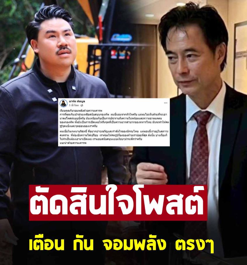 ล่าสุด มาร์ค พิตบูล ได้ออกมาโพสต์ข้อความ เตือน กัน จอมพลัง โดยได้ออกมาโพสต์ข้อความเตือน กัน จอมพลัง เอาไว้ว่า “เรียนคุณกันจอมพลังด้วยความเคารพ