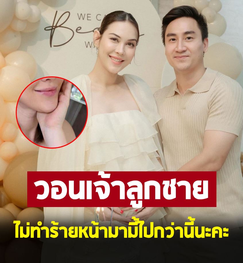พร้อมกับข้อความอ้อนลูกชายว่า “ขอให้เจ้าลูกชาย ไม่ทำร้ายหน้ามามี๊ไปกว่านี้นะคะ”
