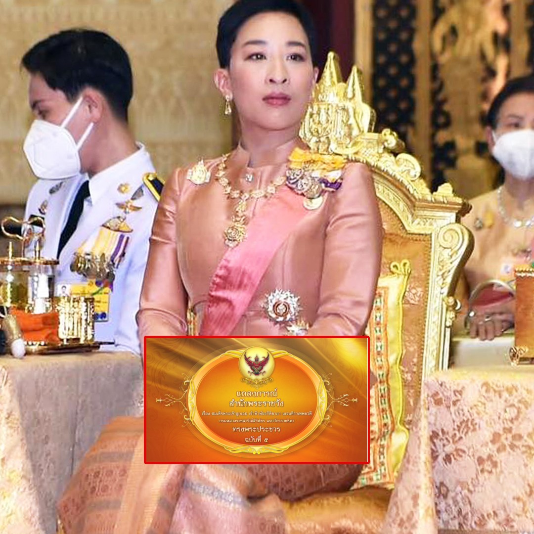 แถลงการณ์สำนักพระราชวังเรื่อง สมเด็จพระเจ้าลูกเธอ เจ้าฟ้าพัชรกิติยาภา นเรนทิราเทพยวดี กรมหลวงราชสาริณีสิริพัชร มหาวัชรราชธิดา ทรงพระประชวร ฉบับที่ 5