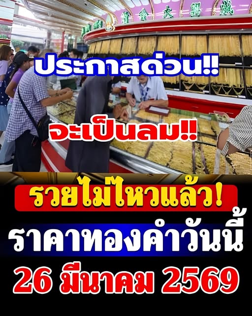 ราคาทองคำวันนี้ 26 มีนาคม 2569 โดย สมาคมค้าทองคำ ประกาศราคาทองครั้งที่ 1 (เปิดตลาด) เมื่อเวลา 09.05 น. ปรับตัวลง 200 บาท สู่บริเวณ 70,300 บาท