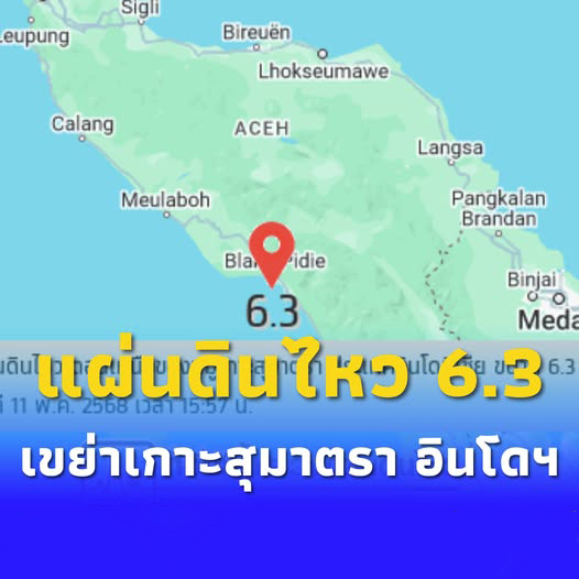 11 พ.ค.68 เกิดแผ่นดินไหว ขนาด 6.3 ทางตอนเหนือของหมู่เกาะสุมาตรา ประเทศอินโดนีเซีย โดย กองเฝ้าระวังแผ่นดินไหว กรมอุตุนิยมวิทยา รายงานว่าเมื่อเวลา 15.57 น.(ตามเวลาในประเทศไทย) ได้เกิดแผ่นดินไหวทางตอนเหนือของหมู่เกาะสุมาตรา ประเทศอินโดนีเซีย ขนาด 6.3 ลึก 49 กิโลเมตร จุดศูนย์กลางอยู่ทางทิศตะวันตกเฉียงใต้ของ อ.เมือง จ.สตูล ประมาณ 492 กิโลเมตร