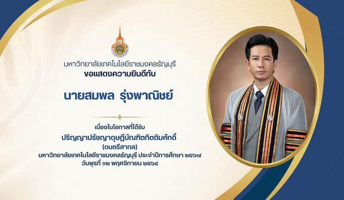 ขอแสดงความยินดีกับนักร้อง-นักแสดงชื่อดัง แหลม – สมพล รุ่งพาณิชย์ วัย 40 ปี ที่ล่าสุดเมื่อวันที่ 12 พ.ย. 68 ที่ผ่านมา ได้เข้ารับปริญญา ปรัชญาดุษฎีบัณฑิตกิตติมศักดิ์ สาขาดนตรีสากล จาก มหาวิทยาลัยเทคโนโลยีราชมงคลธัญบุรี ประจำปีการศึกษา 2567