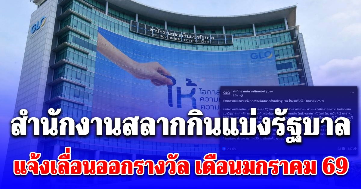 สำนักงานสลากฯ แจ้งเลื่อนออกรางวัล เดือน ม.ค. 69