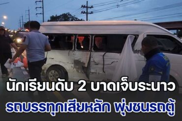 สลด! รถบรรทุกหกล้อเสียหลัก ข้ามเกาะกลางถนน พุ่งชนรถตู้รับ-ส่งนักเรียน เสียชีวิต 2 ราย บาดเจ็บระนาว