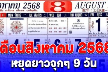 วันหยุดเดือนสิงหาคม 2568 ยาวจุกๆ 9 วัน ได้วันหยุดพิเศษเพิ่มอีก