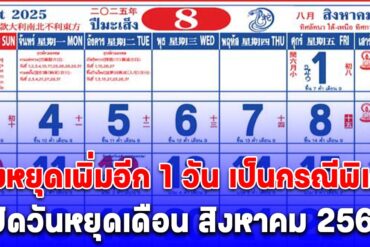 ประกาศแล้ว! ครม. สั่งหยุดเพิ่มอีก 1 วัน เป็นกรณีพิเศษ เปิดวันหยุดเดือน สิงหาคม 2568