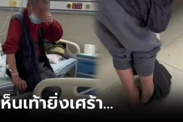 ผู้เฒ่าปาดน้ำตา เข้าแอดมิท รพ.คนเดียว ไม่กล้าซื้อข้าวกิน ก้มโฟกัสที่ “เท้า” ใครเห็นก็เศร้า
