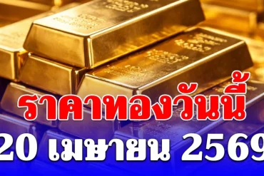 ราคาทองวันนี้ 20 เมษายน 2569