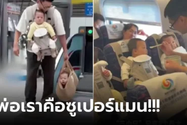 ไวรัลน่าเอ็นดู คุณพ่อพา “แฝดสาม” ขึ้นรถไฟ จัดที่นั่งพิเศษให้เอง ไร้เสียงงอแงกวน ผดส. ตามรายงานของหนังสือพิมพ์ People’s Daily ในช่วงวันหยุดวันชาติจีน เมื่อวันที่ 6 ตุลาคม ที่ผ่านมา นักท่องเที่ยวจากฉางชุน มณฑลจี๋หลิน ได้เก็บภาพฉากน่ารักๆ บนรถไฟความเร็วสูง เมื่อคุณพ่อคนหนึ่งใช้เป้อุ้มเด็ก “แขวน” ลูกแฝดสามวัยแปดเดือน เรียงกันไว้บนเก้าอี้นั่งของแต่ละคน โดยผูกอย่างแน่นหนาให้แน่ใจว่าจะไม่เกิดอันตรายระหว่างเดินทาง เด็กๆ…