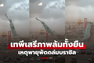 นาทีระทึก พายุซัด “เทพีเสรีภาพจำลอง” สูง 115 ฟุต หักโค่นหน้าห้างดังที่บราซิล เกิดเหตุระทึกขวัญเมื่อวันจันทร์ที่ 15 ธันวาคม ที่ผ่านมา เมื่อพายุรุนแรงพัดถล่มภาคใต้ของประเทศบราซิล ส่งผลให้ รูปปั้นเทพีเสรีภาพจำลอง ขนาดยักษ์ ความสูงกว่า 115 ฟุต ต้านทานแรงลมไม่ไหว ล้มครืนลงมาต่อหน้าต่อตา คลิปวิดีโอวินาทีเกิดเหตุได้กลายเป็นไวรัลในโลกออนไลน์ เผยให้เห็นความน่ากลัวของภัยธรรมชาติที่รุนแรงขึ้น ลมแรง 90 กม./ชม. ซัดรูปปั้นหักกลางลานจอดรถ เหตุการณ์นี้เกิดขึ้นที่เมืองกวยบา (Guaíba)…