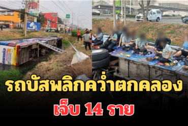 รถบัสพลิกคว่ำตกคลอง เจ็บ 14 ราย คนขับเผยสาเหตุ